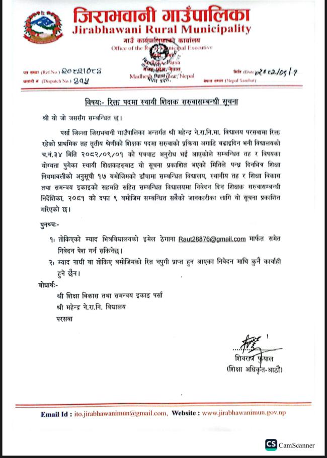 जिराभवानी गाउँपालिका कर्मचारी आवश्यकता सम्बन्धी सूचना!