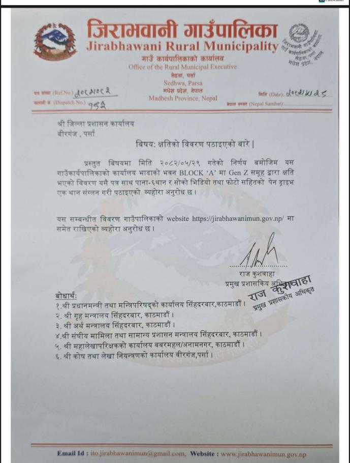 Gen Z द्वारा अगजनी भएको सामग्री कागजातहरूको मुचुल्का।